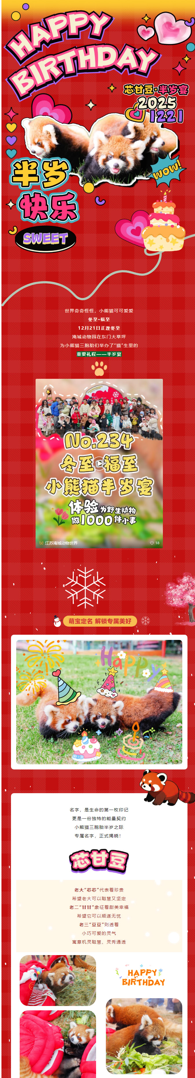 “芯甘豆” 报到!小熊猫三胞胎半岁快乐~