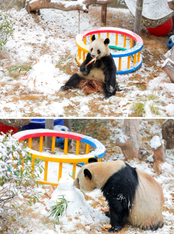 国宝大熊猫身上落上雪花🐼
