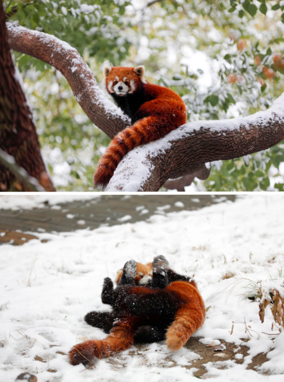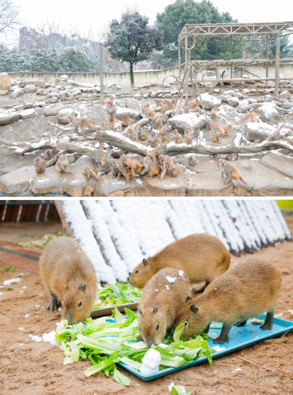雪给萌兽们带来了无限的欢乐