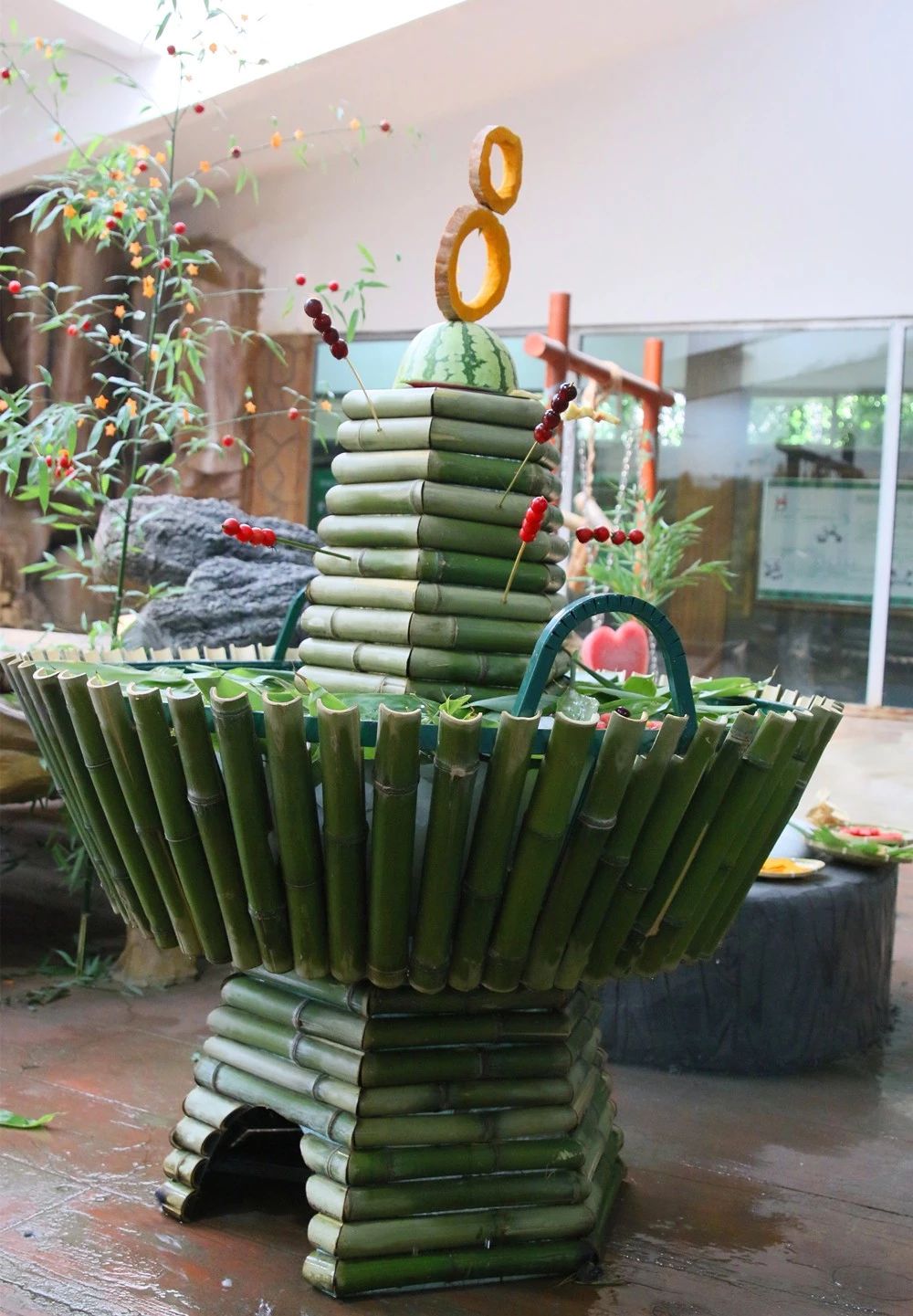 用竹叶、苹果、窝窝头等精心装饰