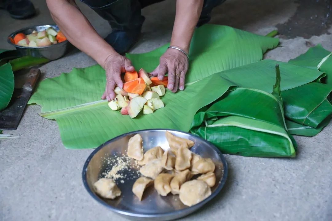 大片芭蕉叶包裹着