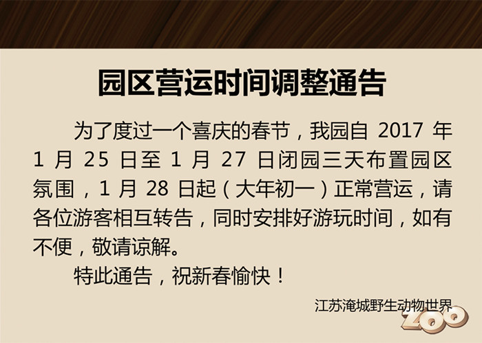 【闭园通知】淹野1月25日至27日闭园,大年初一正式开园